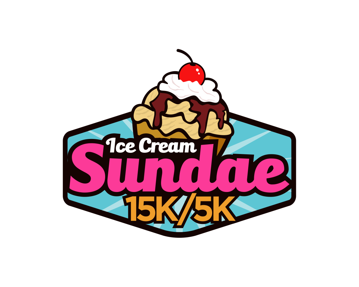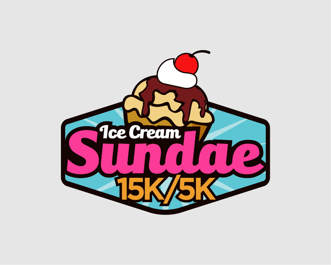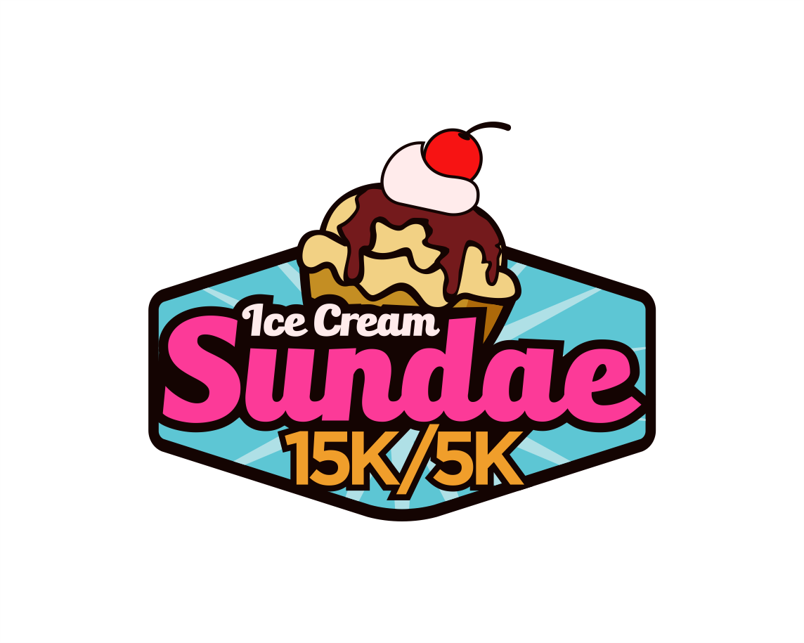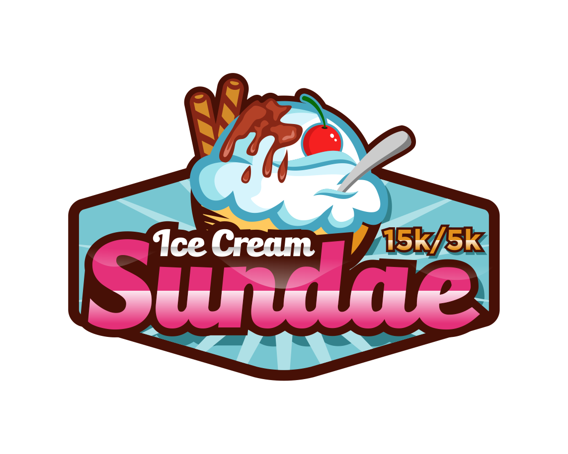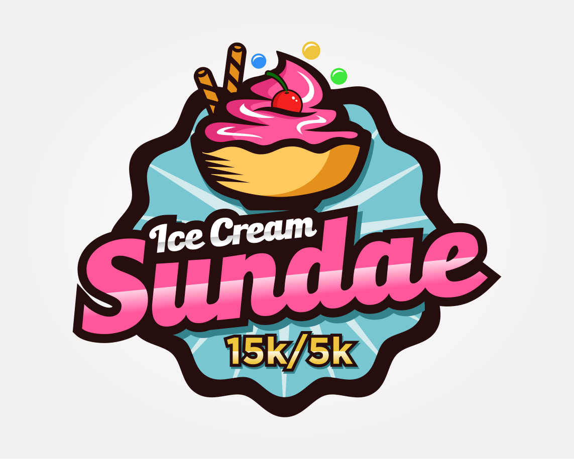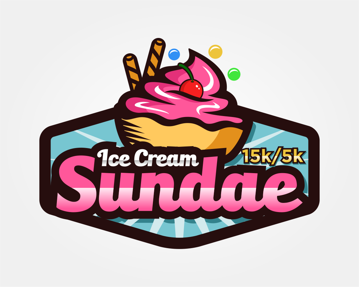 Can I see what making all the ice cream just once color looks like, make it like vanilla, also whiten up the whip cream - match the "ice cream" white. Let's move that 15k/5k around a bit - I want it larger. So maybe pull it to the right or below the logo and make it larger, maybe 2x the size?