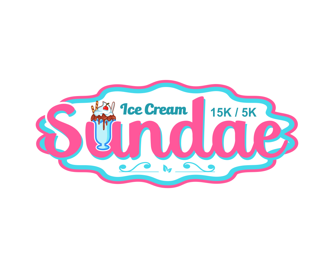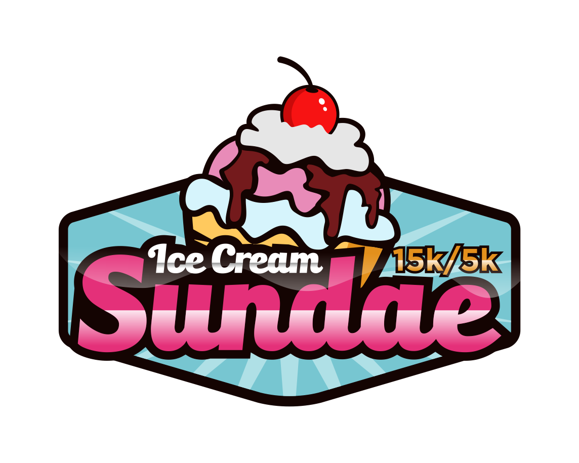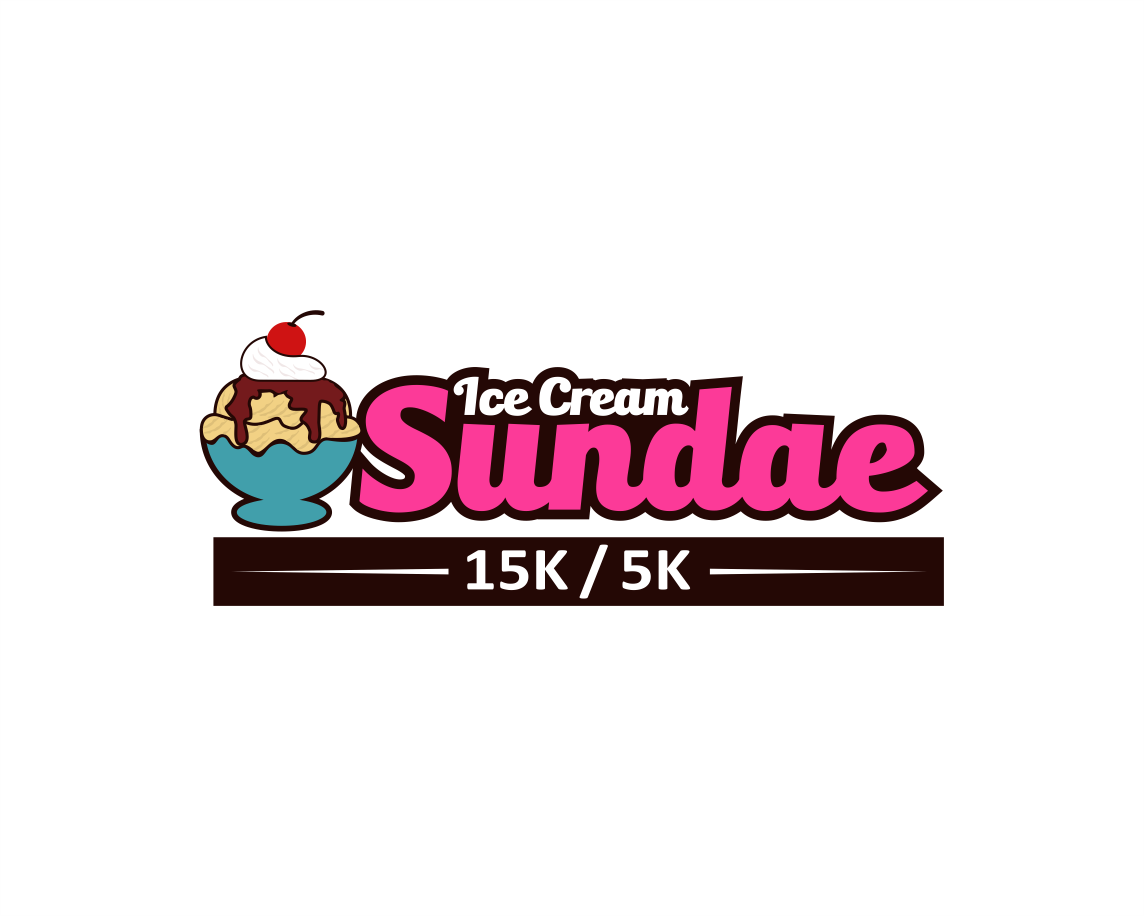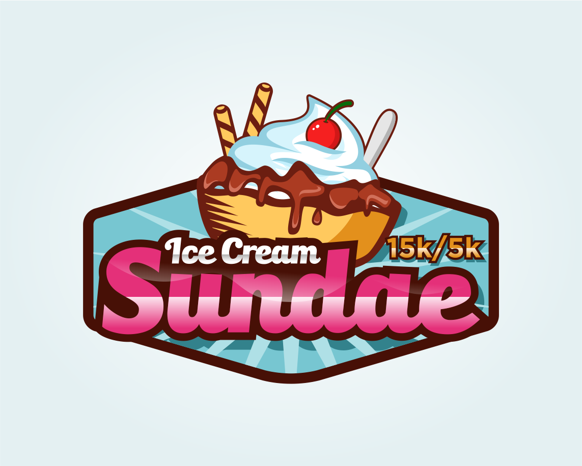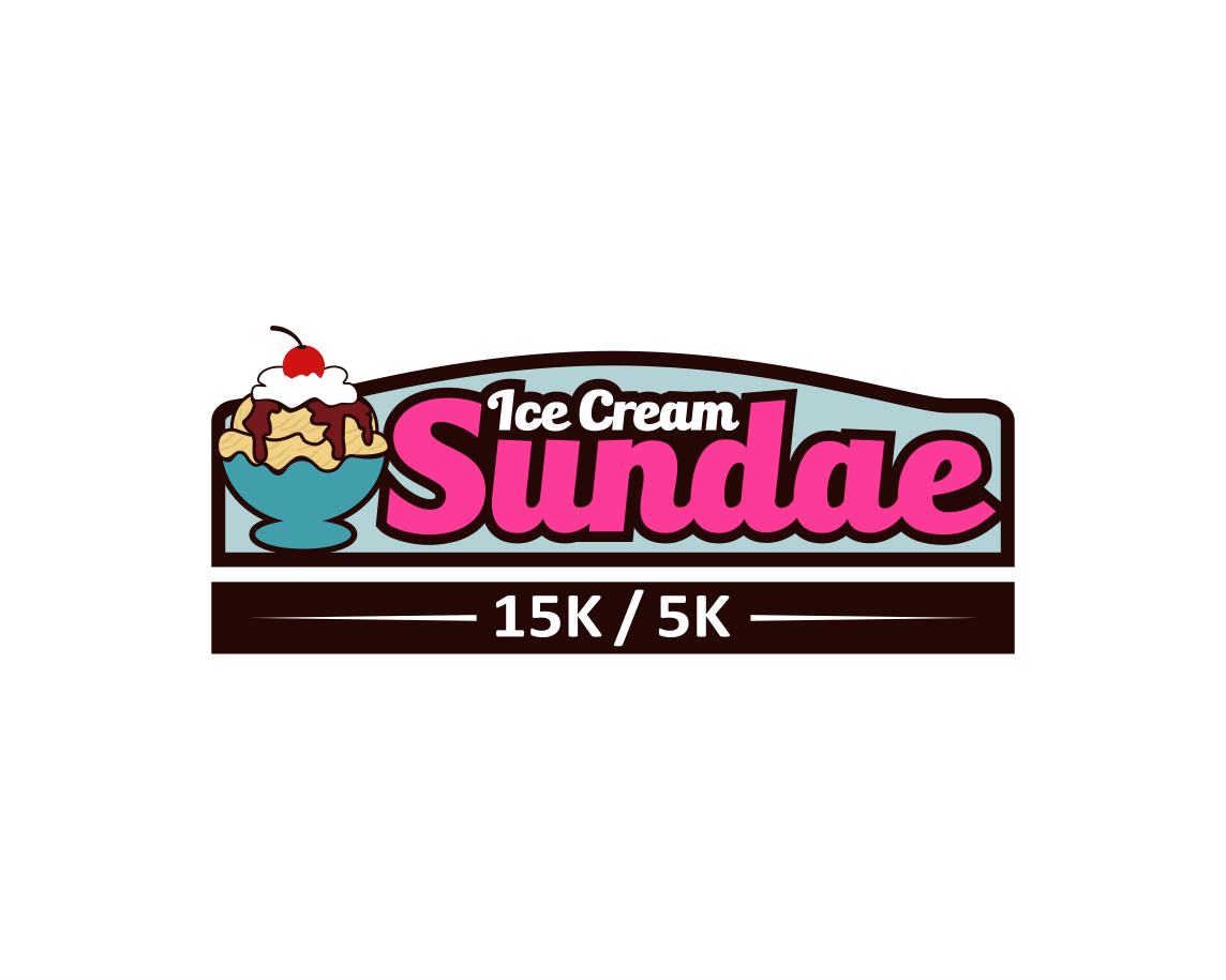 Can I see what making all the ice cream just once color looks like, make it like vanilla, also whiten up the whip cream - match the "ice cream" white. Let's move that 15k/5k around a bit - I want it larger. So maybe pull it to the right or below the logo and make it larger, maybe 2x the size?