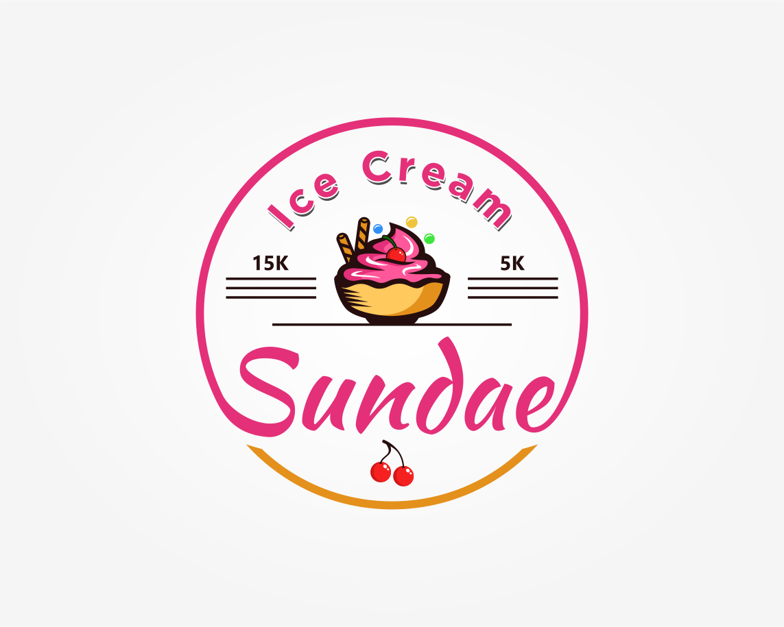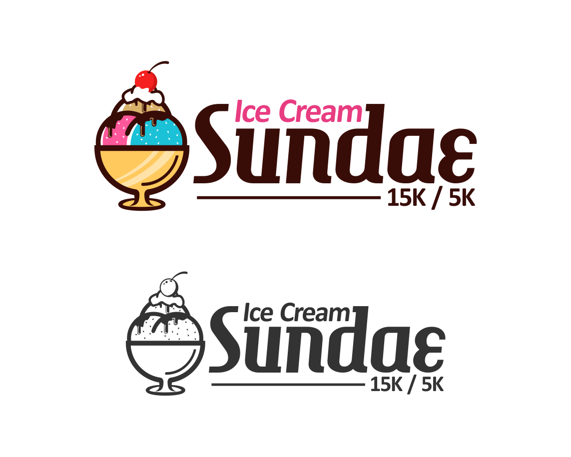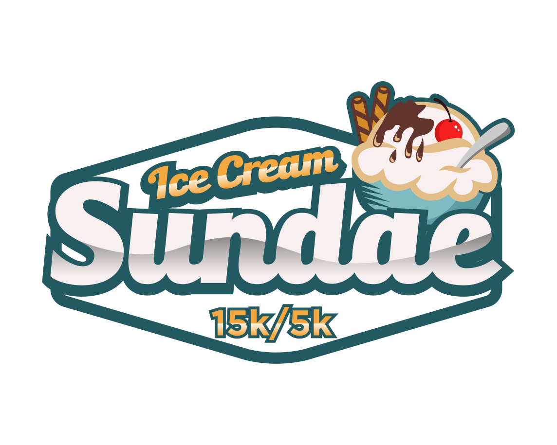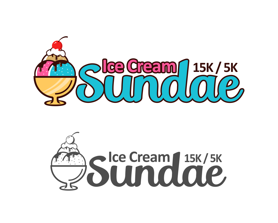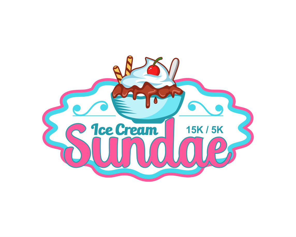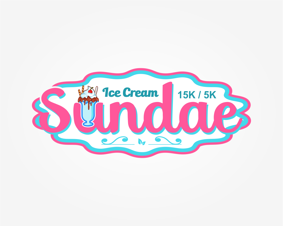 Can I see what making all the ice cream just once color looks like, make it like vanilla, also whiten up the whip cream - match the "ice cream" white. Let's move that 15k/5k around a bit - I want it larger. So maybe pull it to the right or below the logo and make it larger, maybe 2x the size?